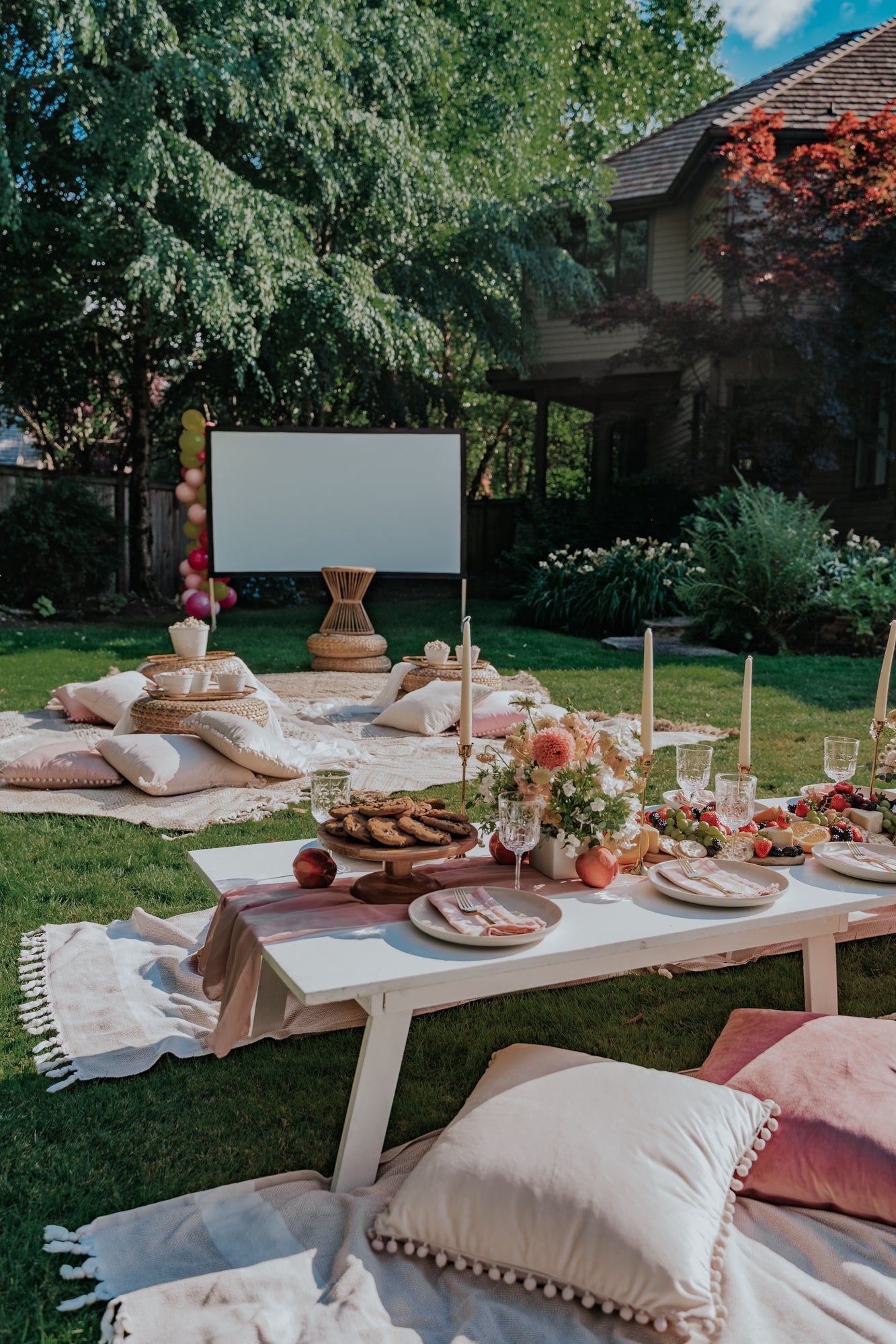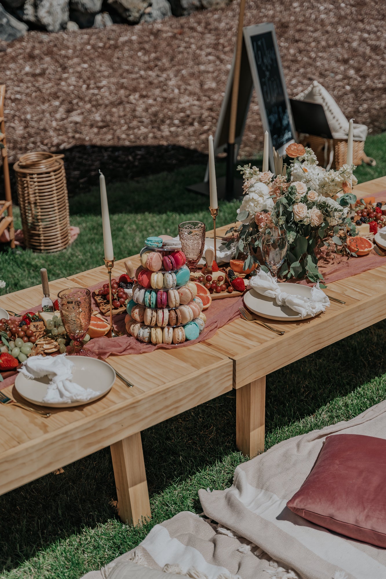 Pick between our custom-made low picnic tables and pillow seating, or dining height tables and chairs with multiple linen options.